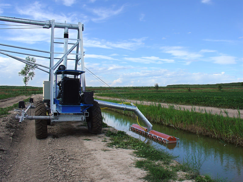 Sistema de riego lateral de avance frontal.